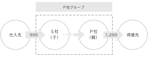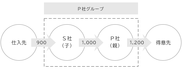S社(P社が議決権の100%を保有する子会社)がグループ外の仕入先から商品を900百万円で仕入れ、これをP社に1,000百万円で売却しました(【図表1】参照)。