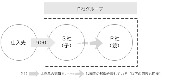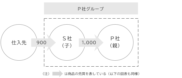 - S社は当期に900百万円でグループ外から仕入れた商品を、P社に1,000百万円で売却した。
