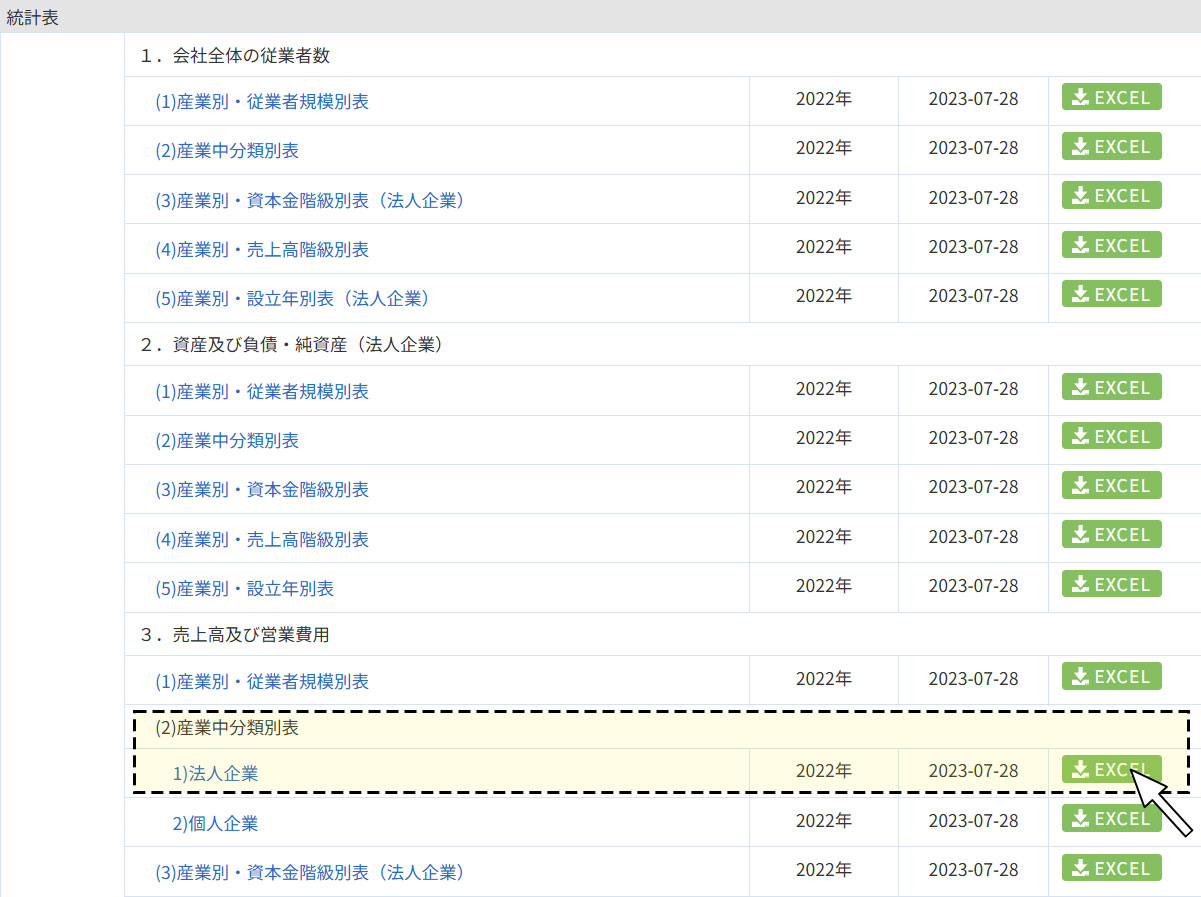 こんなとき、自分が知りたい経営指標の実績値をもっと柔軟に知ることができたら便利なはずです。そのための方法が、Excelで掲載されている統計表を活用する方法になります。